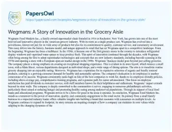 Wegmans: A Story of Innovation in the Grocery Aisle. (2024, Apr 01). Retrieved from https://hub.papersowl.com/examples/wegmans-a-story-of-innovation-in-the-grocery-aisle/