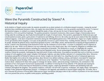 Were the Pyramids Constructed by Slaves? A Historical Inquiry. (2024, May 21). Retrieved from https://hub.papersowl.com/examples/were-the-pyramids-constructed-by-slaves-a-historical-inquiry/