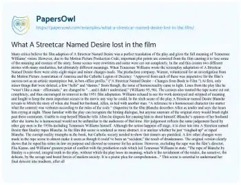 What A Streetcar Named Desire lost in the film. (2020, Jan 31). Retrieved from https://hub.papersowl.com/examples/what-a-streetcar-named-desire-lost-in-the-film/