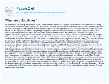What are Subcultures?. (2024, Apr 22). Retrieved from https://hub.papersowl.com/examples/what-are-subcultures/