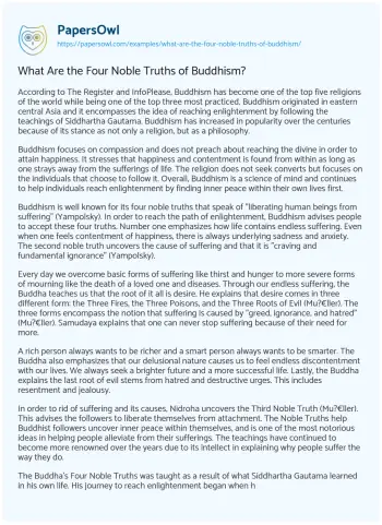 What Are the Four Noble Truths of Buddhism?. (2020, May 08). Retrieved from https://hub.papersowl.com/examples/what-are-the-four-noble-truths-of-buddhism/