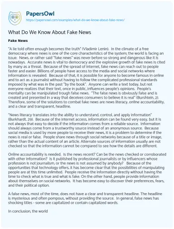 What Do We Know About Fake News. (2019, May 17). Retrieved from https://hub.papersowl.com/examples/what-do-we-know-about-fake-news/