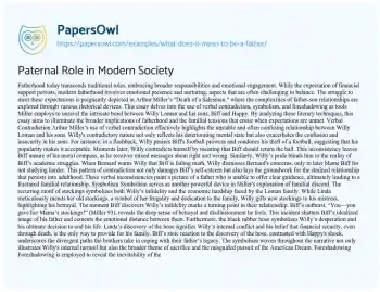 Paternal Role in Modern Society. (2019, Apr 11). Retrieved from https://hub.papersowl.com/examples/what-does-it-mean-to-be-a-father/