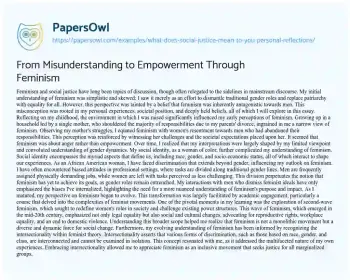 From Misunderstanding to Empowerment Through Feminism. (2023, Jun 19). Retrieved from https://hub.papersowl.com/examples/what-does-social-justice-mean-to-you-personal-reflections/