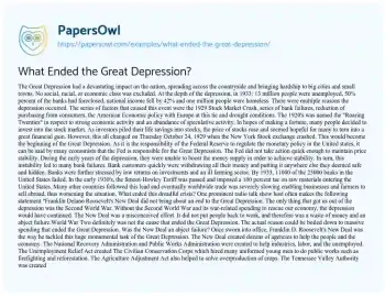 What Ended the Great Depression?. (2019, Sep 29). Retrieved from https://hub.papersowl.com/examples/what-ended-the-great-depression/