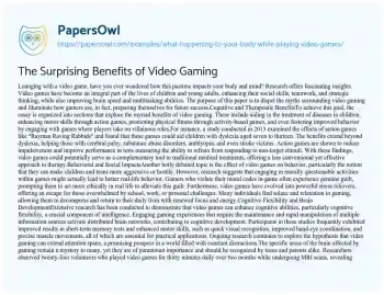 The Surprising Benefits of Video Gaming. (2020, Jan 28). Retrieved from https://hub.papersowl.com/examples/what-happening-to-your-body-while-playing-video-games/