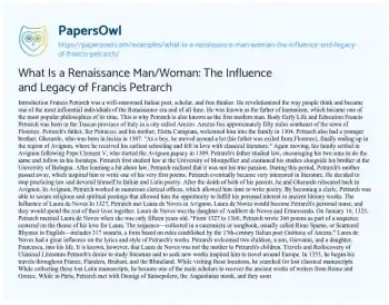 What Is a Renaissance Man/Woman: The Influence and Legacy of Francis Petrarch. (2023, Sep 06). Retrieved from https://hub.papersowl.com/examples/what-is-a-renaissance-man-woman-the-influence-and-legacy-of-francis-petrarch/
