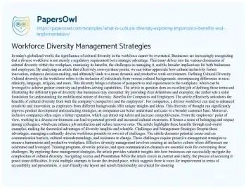 Workforce Diversity Management Strategies. (2023, Jun 16). Retrieved from https://hub.papersowl.com/examples/what-is-cultural-diversity-exploring-importance-benefits-and-implementation/