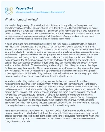 What is homeschooling?. (2019, Oct 15). Retrieved from https://hub.papersowl.com/examples/what-is-homeschooling/