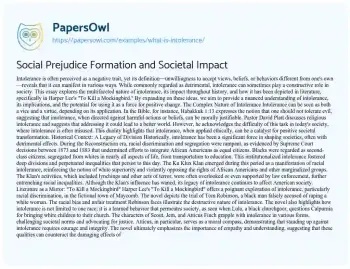 Social Prejudice Formation and Societal Impact. (2020, Feb 12). Retrieved from https://hub.papersowl.com/examples/what-is-intolerance/
