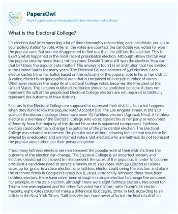 What is the Electoral College?. (2019, Feb 28). Retrieved from https://hub.papersowl.com/examples/what-is-the-electoral-college/