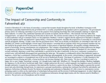 The Impact of Censorship and Conformity in Fahrenheit 451. (2019, Oct 01). Retrieved from https://hub.papersowl.com/examples/what-is-the-role-of-censorship-in-fahrenheit-451/