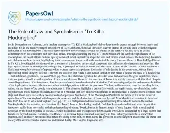 The Role of Law and Symbolism in *To Kill a Mockingbird*. (2020, Feb 29). Retrieved from https://hub.papersowl.com/examples/what-is-the-symbolic-meaning-of-mockingbirds/