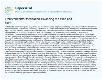 Transcendental Meditation: Balancing the Mind and Spirit. (2019, Aug 04). Retrieved from https://hub.papersowl.com/examples/what-is-transcendental-meditation/