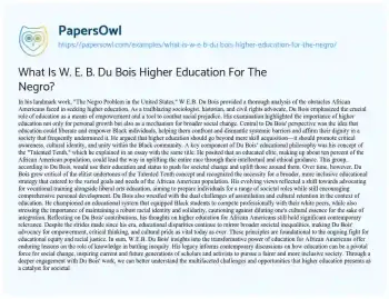 What Is W. E. B. Du Bois Higher Education For The Negro?. (2024, Apr 29). Retrieved from https://hub.papersowl.com/examples/what-is-w-e-b-du-bois-higher-education-for-the-negro/