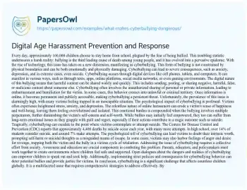 Digital Age Harassment Prevention and Response. (2019, Aug 06). Retrieved from https://hub.papersowl.com/examples/what-makes-cyberbullying-dangerous/