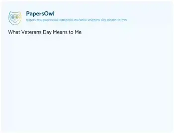 What Veterans Day Means to Me. (2024, Dec 27). Retrieved from https://hub.papersowl.com/examples/what-veterans-day-means-to-me/