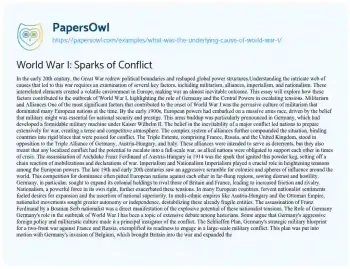 World War I: Sparks of Conflict. (2021, Apr 19). Retrieved from https://hub.papersowl.com/examples/what-was-the-underlying-cause-of-world-war-1/