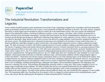 The Industrial Revolution: Transformations and Legacies. (2021, Mar 20). Retrieved from https://hub.papersowl.com/examples/what-were-some-negative-effects-of-the-industrial-revolution/