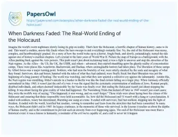 When Darkness Faded: The Real-World Ending of the Holocaust. (2023, Dec 15). Retrieved from https://hub.papersowl.com/examples/when-darkness-faded-the-real-world-ending-of-the-holocaust/