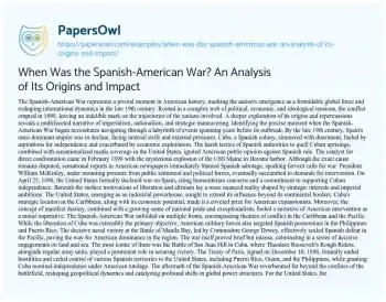 When Was the Spanish-American War? An Analysis of Its Origins and Impact. (2024, Jun 17). Retrieved from https://hub.papersowl.com/examples/when-was-the-spanish-american-war-an-analysis-of-its-origins-and-impact/
