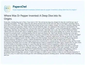 Where Was Dr Pepper Invented: A Deep Dive into Its Origins. (2024, Mar 25). Retrieved from https://hub.papersowl.com/examples/where-was-dr-pepper-invented-a-deep-dive-into-its-origins/