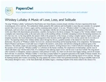 Whiskey Lullaby: A Music of Love, Loss, and Solitude. (2024, Jan 26). Retrieved from https://hub.papersowl.com/examples/whiskey-lullaby-a-music-of-love-loss-and-solitude/