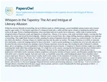 Whispers in the Tapestry: The Art and Intrigue of Literary Allusion. (2024, Jan 09). Retrieved from https://hub.papersowl.com/examples/whispers-in-the-tapestry-the-art-and-intrigue-of-literary-allusion/