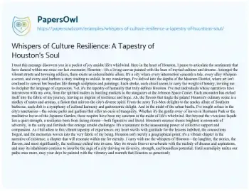 Whispers of Culture Resilience: A Tapestry of Houston's Soul. (2023, Dec 22). Retrieved from https://hub.papersowl.com/examples/whispers-of-culture-resilience-a-tapestry-of-houstons-soul/