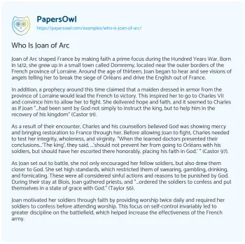 Who Is Joan of Arc. (2020, Feb 04). Retrieved from https://hub.papersowl.com/examples/who-is-joan-of-arc/