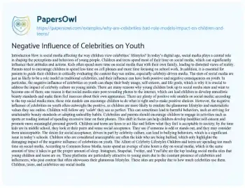 Negative Influence of Celebrities on Youth. (2023, Aug 15). Retrieved from https://hub.papersowl.com/examples/why-are-celebrities-bad-role-models-impact-on-children-and-teens/