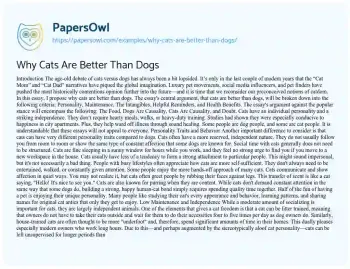 Why Cats Are Better Than Dogs. (2024, Dec 27). Retrieved from https://hub.papersowl.com/examples/why-cats-are-better-than-dogs/