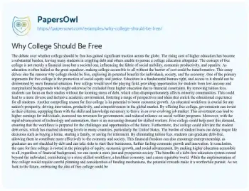 This essay delves into the reasons why college should be free, exploring its potential benefits for individuals, society, and the economy.