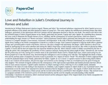 Love and Rebellion in Juliet’s Emotional Journey in Romeo and Juliet