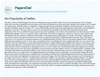 the Popularity of Selfies. (2019, Jul 28). Retrieved from https://hub.papersowl.com/examples/why-do-we-love-taking-selfies/