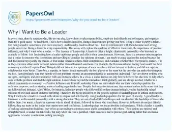 Why I Want to Be a Leader. (2021, May 10). Retrieved from https://hub.papersowl.com/examples/why-do-you-want-to-be-a-leader/