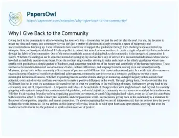 Why I Give Back to the Community. (2024, Apr 29). Retrieved from https://hub.papersowl.com/examples/why-i-give-back-to-the-community/
