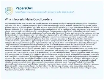 Why Introverts Make Good Leaders. (2020, Apr 10). Retrieved from https://hub.papersowl.com/examples/why-introverts-make-good-leaders/