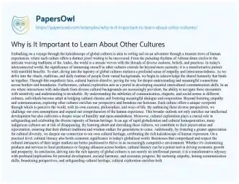 Why is It Important to Learn About Other Cultures. (2024, Apr 29). Retrieved from https://hub.papersowl.com/examples/why-is-it-important-to-learn-about-other-cultures/