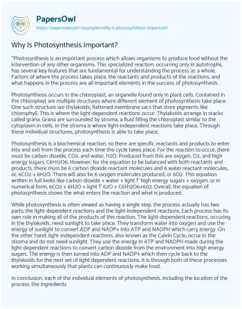 Why Is Photosynthesis Important?. (2019, Aug 14). Retrieved from https://hub.papersowl.com/examples/why-is-photosynthesis-important/