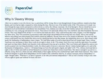 Why Is Slavery Wrong. (2022, Feb 10). Retrieved from https://hub.papersowl.com/examples/why-is-slavery-wrong/