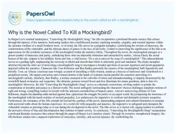 Why is the Novel Called To Kill a Mockingbird?. (2024, May 01). Retrieved from https://hub.papersowl.com/examples/why-is-the-novel-called-to-kill-a-mockingbird/