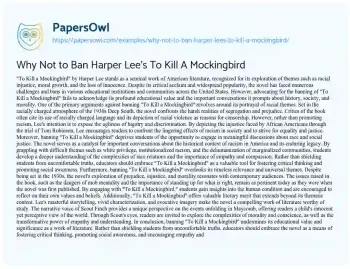 Why Not to Ban Harper Lee's To Kill A Mockingbird. (2024, May 01). Retrieved from https://hub.papersowl.com/examples/why-not-to-ban-harper-lees-to-kill-a-mockingbird/