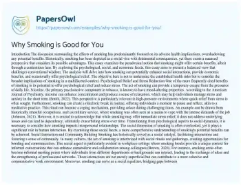 Why Smoking is Good for You. (2024, Dec 27). Retrieved from https://hub.papersowl.com/examples/why-smoking-is-good-for-you/