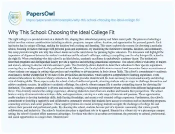 Why This School: Choosing the Ideal College Fit. (2025, Mar 30). Retrieved from https://hub.papersowl.com/examples/why-this-school-choosing-the-ideal-college-fit/