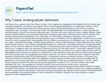 This essay will provide insights into the unique aspects of Tulane University that make it an appealing choice for undergraduate admission. It will discuss the academic programs, campus culture, community involvement, and the diverse opportunities available at Tulane. The piece will highlight factors such as the university’s location in New Orleans, its commitment to research and innovation, and its approach to holistic education. It will also offer advice on how prospective students can effectively articulate their interest in Tulane in their admissions essays. Moreover, at PapersOwl, there are additional free essay samples connected to Academic Research.