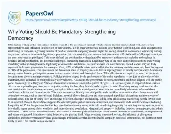 Why Voting Should Be Mandatory: Strengthening Democracy. (2025, Apr 08). Retrieved from https://hub.papersowl.com/examples/why-voting-should-be-mandatory-strengthening-democracy/
