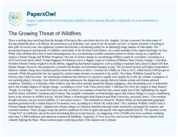 The Growing Threat of Wildfires. (2022, Mar 24). Retrieved from https://hub.papersowl.com/examples/wildfires-the-natural-disaster-outbreak-no-one-wanted-to-expect/