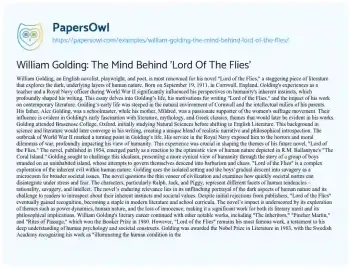 William Golding: The Mind Behind 'Lord Of The Flies'. (2023, Nov 24). Retrieved from https://hub.papersowl.com/examples/william-golding-the-mind-behind-lord-of-the-flies/