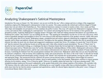 Analyzing Shakespeare's Satirical Masterpiece. (2022, Feb 08). Retrieved from https://hub.papersowl.com/examples/william-shakespeares-sonnet-130-analysis-essay/